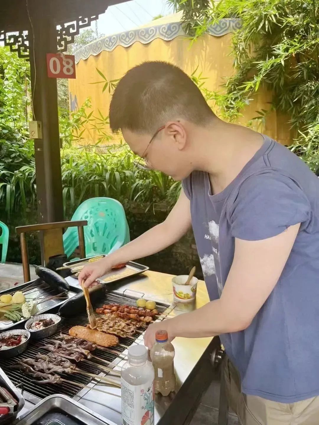 BBQ期间,大家分工明确、各显其能,配合十分默契。生火的、取食材的、刷酱的、烧烤的……忙得不亦乐乎。大家平时未显露出的厨艺,在BBQ上发挥得淋漓尽致。