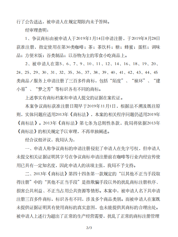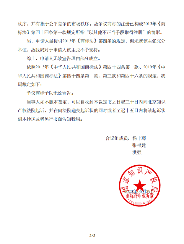 最终,国家知识产权局裁定:争议商标予以无效宣告。