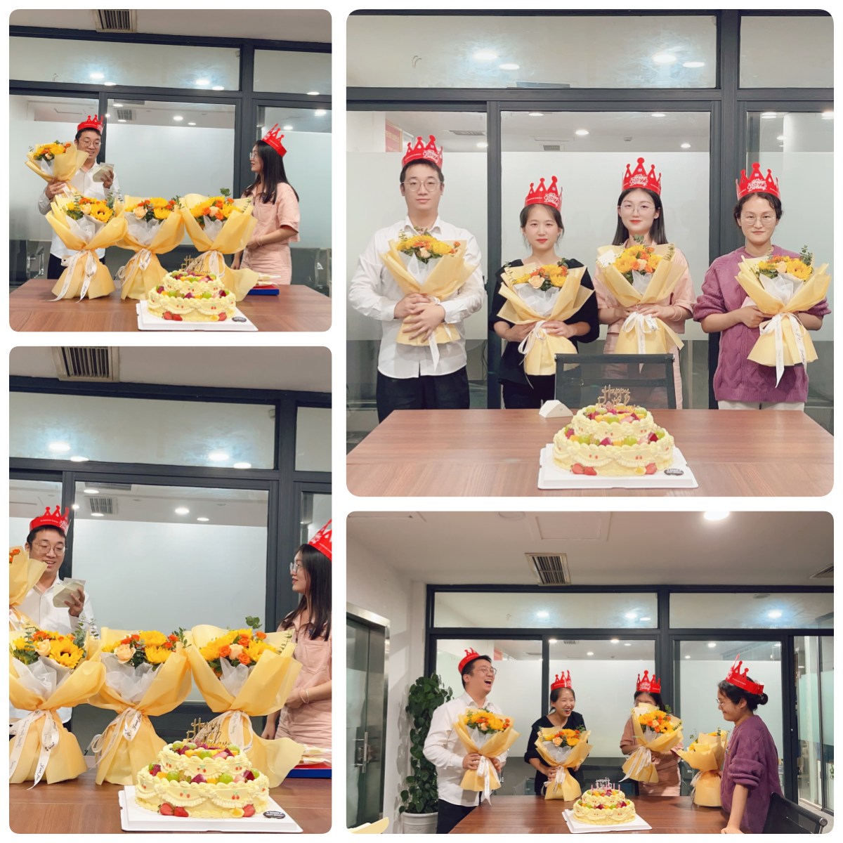 随着活动现场欢快的“生日快乐”歌响起,寿星们在全体小伙伴的祝福声中,点亮蜡烛、许下愿望。公司为寿星们送上鲜花、生日礼物及贺卡。贺卡上是领导和员工为寿星们写下的祝福,寿星们收到后感动不已,分享了自己的梦想和现阶段的目标。